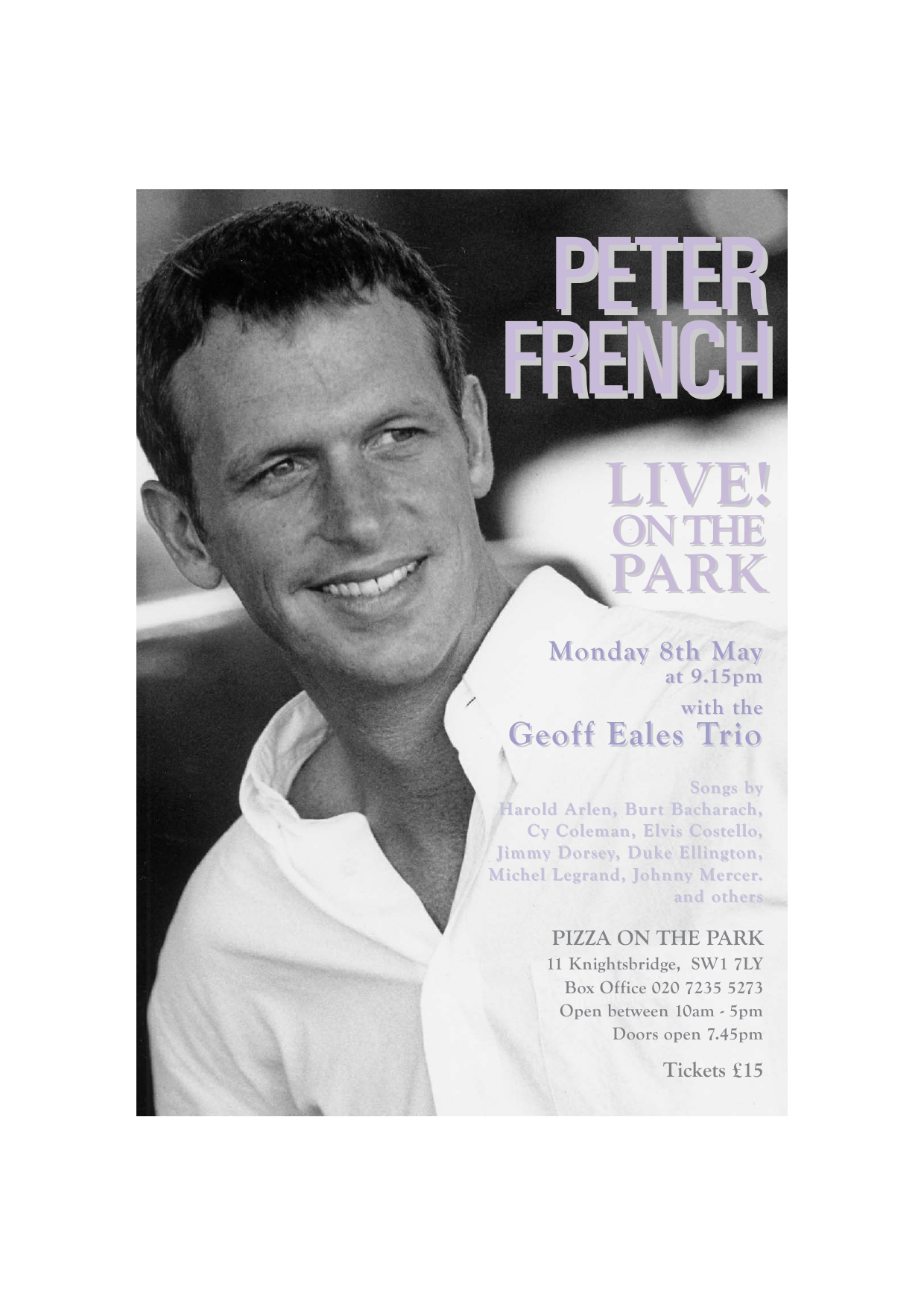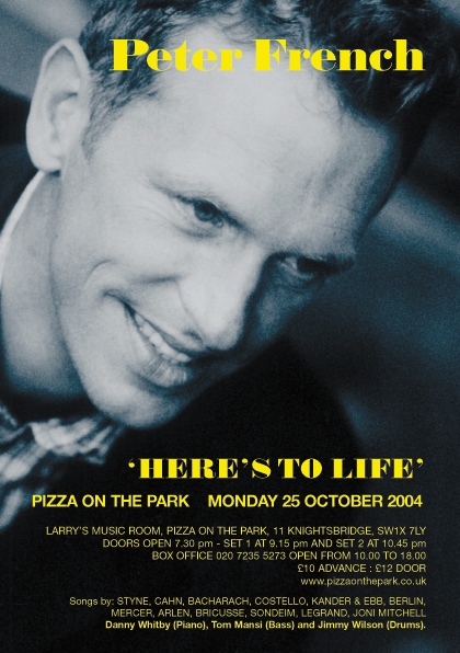 This is the flyer for my very first concert, HERE’S TO LIFE, at London’s famous Pizza On The Park. I couldn’t have started my career off in a better place, London’s foremost Cabaret venue at the time.This was also the first of my concept shows, whereby I would pick a theme for my concerts and then choose specific songs that would tell the story. Here, as the title suggests, this show looked at life, as we all live it, from love to relationships, and youth to older years. I loved this show and the songs I selected, quite an eclectic mix, from theatre songs to contemporary songs, a formula I have continued to use to this day. I like to take an audience on a journey and this one was the start of my own journey as a singer. This show was a huge success and set me on my way.